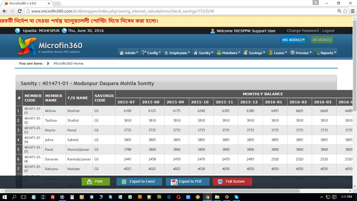 Home / প্রকল্পের MIS Software এ সুফলভোগী সদস্যদের সঞ্চয়ের উপর সুদ Auto Posting দেয়ার নিয়মাবলী / Step-3: এর পর সমিতির সদস্য ওয়ারী ১ বছরের সঞ্চয়ের সুদের পরিমান দেখাবে।